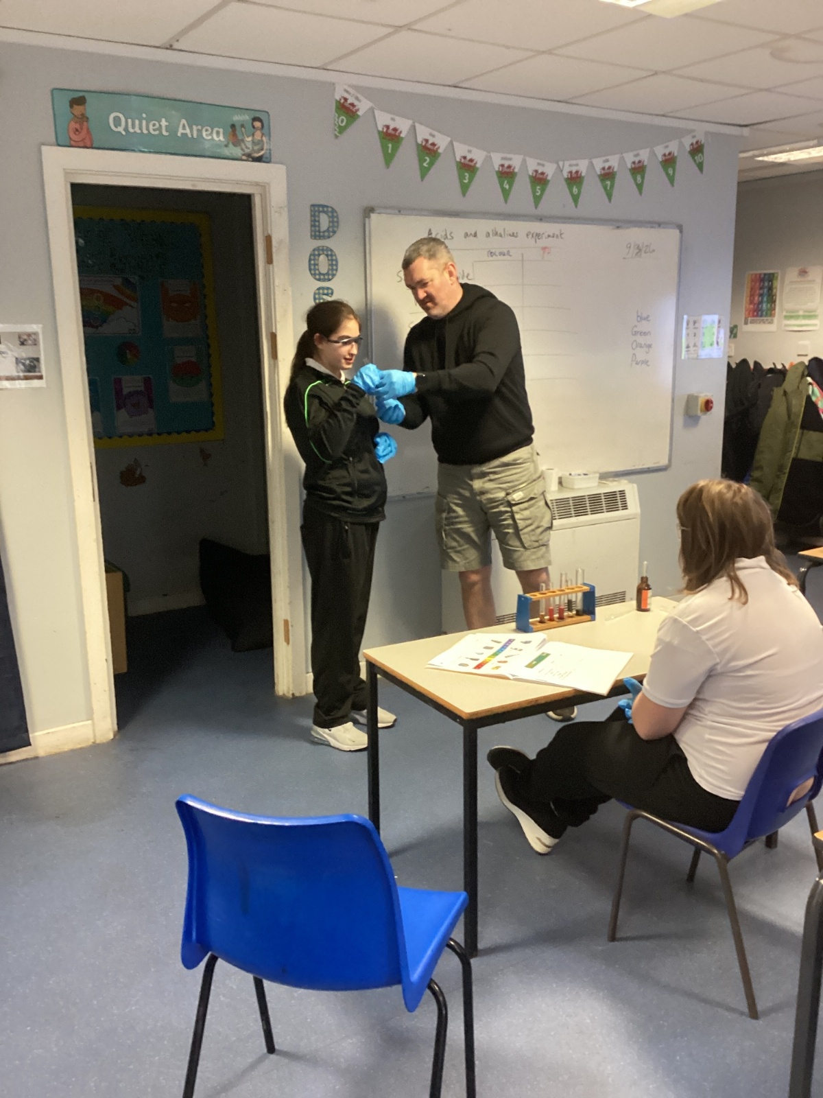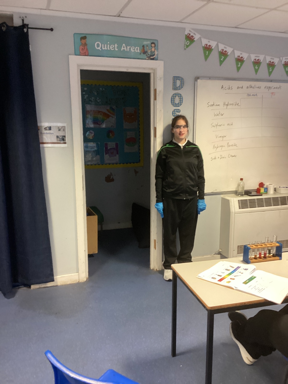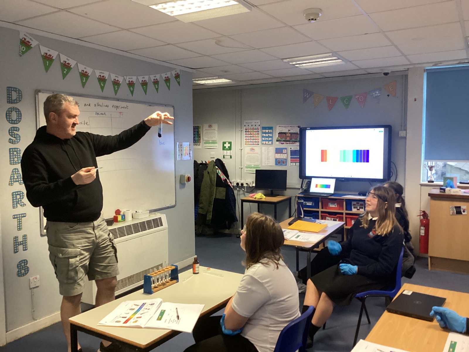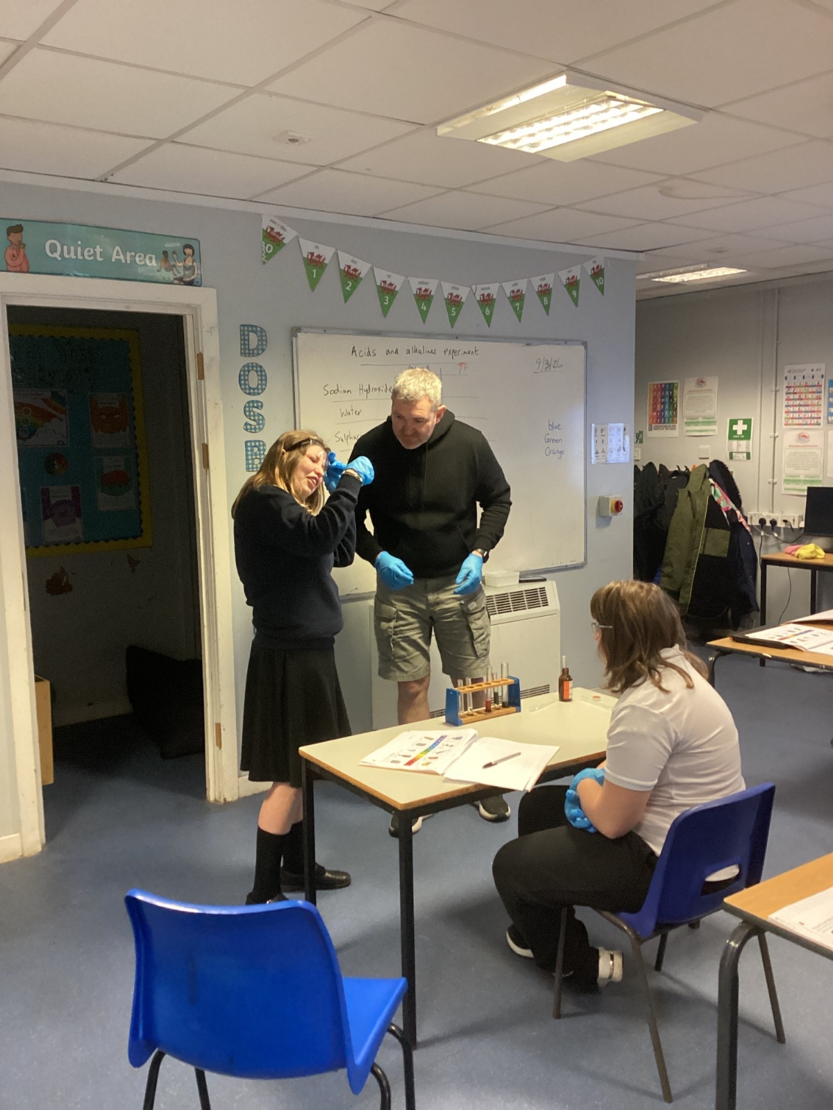Pupils tested a variety of everyday substances such as vinegar, lemon juice, water and Sulphuric acid and bleach. Using universal indicator solution, they carefully observed colour changes and recorded the corresponding pH values.
